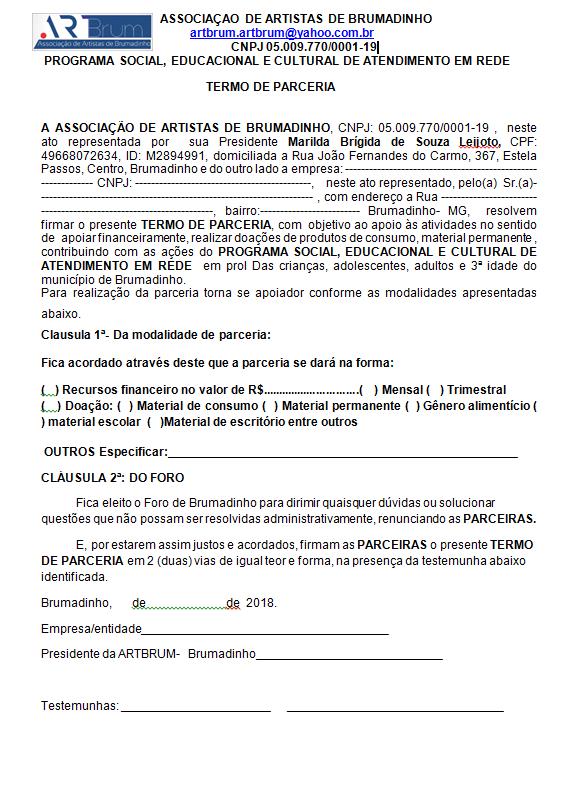 ARTBRUM mantem suas parcerias junto ao municipio através do comércio local com: